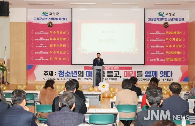 제이앤엠뉴스 | 고성군은 12월 4일, 고성군청소년센터“온” 1층 모이자홀에서 고성군청소년상담복지센터 및 학교밖청소년지원센터의 2025년도 통합보고회를 개최했다고 밝혔다.