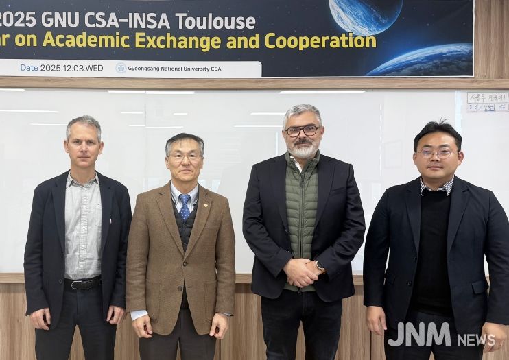 제이앤엠뉴스 | 경상국립대학교 우주항공대학은 12월 3일 가좌캠퍼스 항공우주산학협력관에서 프랑스 국립응용과학원(INSA Toulouse, 인사툴루즈)와 ‘우주항공 연구교류회 및 특강’을 개최했다.