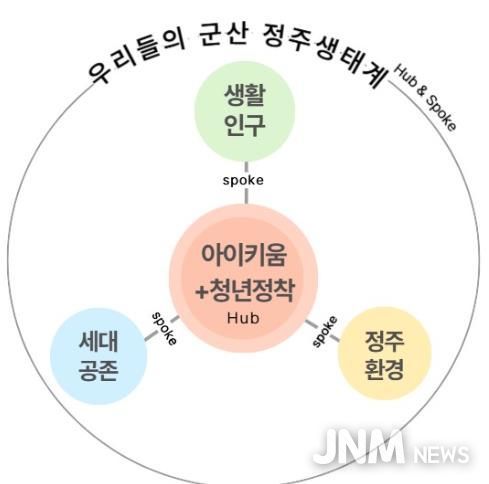 허브-앤-스포크 전략은 핵심 분야(허브)에 정책 역량을 집중하고, 주변 분야(스포크)와 연계해 효과를 극대화하는 방식으로, 군산시는 ‘아이키움’과 ‘청년정착’을 두 개의 핵심축으로 설정했다.