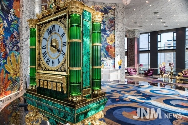 7층 로비에 들어서면 에메랄드빛 공작석으로 제작된 3미터 높이의 발디(Baldi) 기념 시계와 5미터짜리 24K로 도금한 콜롬보스틸(Colombostile) 소파가 호화롭고 웅장한 분위기를 연출한다.