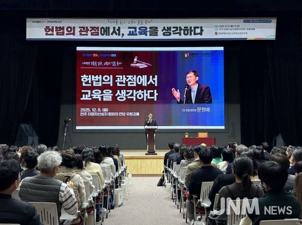 제이앤엠뉴스 | 전북특별자치도교육청교육연수원(원장 민완성)은 8일 전주 치명자성지 세계평화의전당 유항검홀에서 문형배 전 헌법재판관을 초청해 ‘헌법의 관점으로 교육을 생각하다’를 주제로 직무연수를 개최한다.