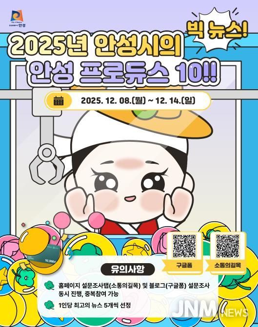 제이앤엠뉴스 | 안성시는 8일부터 14일까지 7일간 ‘2025년을 빛낸 안성시 10대 뉴스’ 선정을 위한 온·오프라인 시민 투표를 진행한다고 밝혔다.