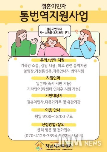 제이앤엠뉴스 | 하남시가족센터(센터장 문병용)는 지역 내 다문화가족과 유관기관을 대상으로 통·번역지원서비스를 연중 운영하며, 언어 소통에 어려움을 겪는 결혼이민자의 안정적 지역사회 적응을 적극 지원하고 있다.