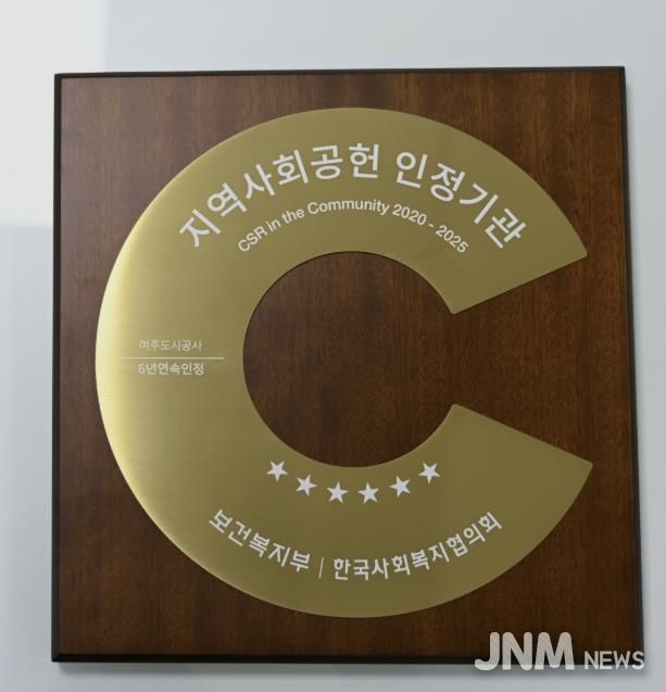 제이앤엠뉴스 | 여주도시공사는 지역사회 공헌활동의 우수성을 공식적으로 인정받는 ‘지역사회공헌 인정제(Community Contribution Recognition)’를 6년 연속 획득했다고 10일 밝혔다.