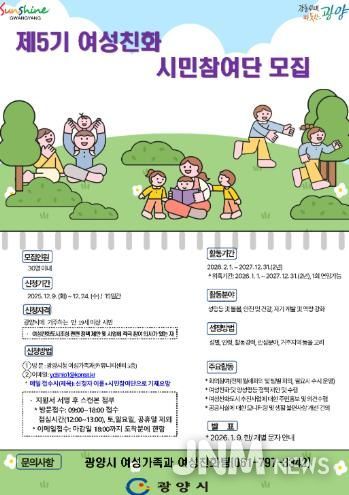 제이앤엠뉴스 | 광양시는 여성친화도시 조성에 시민의 목소리를 적극 반영하기 위해 제5기 여성 친화 시민참여단을 모집한다고 밝혔다.