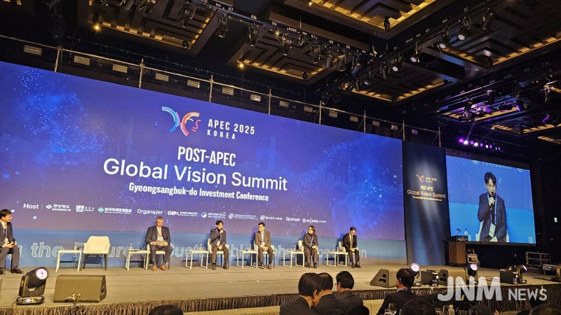 제이앤엠뉴스 | 27일 개막한 'Post-APEC Global Vision Summit'에는 국내외 기업인과 외교 관계자를 포함한 700여 명이 참석했다. 회의는 AI, 바이오, 공급망, K-컬처를 주요 의제로 다루며, 포스트 APEC 시대 국제 협력의 중요성을 강조했다. 경북 22개 지자체장은 투자 확대와 글로벌 연계를 강화하겠다는 의지를 담은 '포스트 APEC 비전 선언'을 발표했다.
