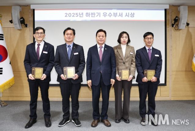 제이앤엠뉴스 | 경상남도는 2025년 하반기 우수부서 10곳을 선정했다. 이 가운데 최우수부서로 뽑힌 4개 부서에는 15일 오전 실국본부장회의에서 박완수 도지사가 직접 상장을 전수하며 격려했다. 나머지 6개 우수부서에도 개별적으로 상패와 포상이 전달될 예정이다.