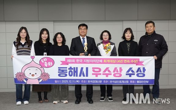 이번 수상은 제5회 우수상, 제6회 장려상, 제7회 우수상에 이어 4년 연속 수상으로, 동해시의 회계 투명성과 재정운용 역량이 지속적으로 높은 평가를 받고 있음을 다시 한번 입증했다.