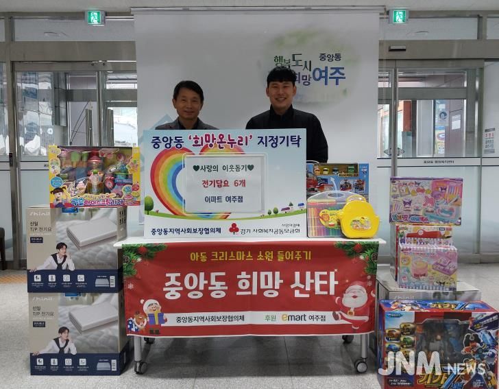 또한 이마트 여주점은 중앙동지역사회보장협의체 특수시책인 '2025년 이마트 여주점과 함께하는 ‘사랑의 온도나눔 사업’'에 동참해 난방용품도 함께 기부했다. 전기장판 6개를 기탁했으며, 겨울철 난방에 어려움을 겪는 취약계층 가정에 순차적으로 지원될 예정이다.