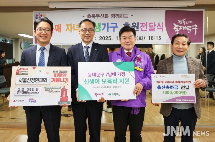 제이앤엠뉴스 | 서울 동대문구가 관내 ‘일곱째 아이’ 출생 가정을 찾아 축하와 응원의 마음을 전했다. 동대문구는 16일 회기동 주민센터에서 다자녀 가정을 격려하는 행사를 열고, 민간 후원과 연계한 지원 물품과 후원금을 전달했다고 밝혔다.