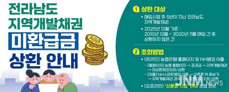 제이앤엠뉴스 | 전라남도가 오는 31일까지 보름여간 2025년 전남도 지역개발채권 미환급금 일제상환 기간을 운영, 도민 권리 보호에 나선다고 밝혔다.