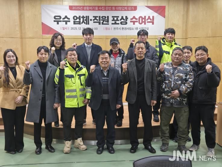 제이앤엠뉴스 | 원주시는 12월 16일 '2025년 생활폐기물 수집ㆍ운반 대행업체 평가결과'에 따른 우수등급 업체 및 소속 직원을 대상으로 원주시장 상장 및 표창장을 수여한다.