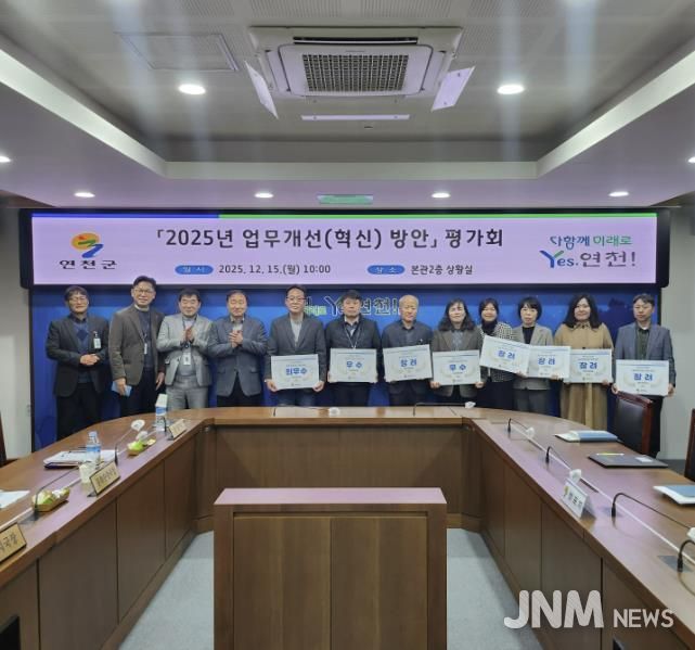 제이앤엠뉴스 | 연천군은 지난 15일 관행적·반복적으로 해오던 업무방식을 진단·개선해, 보다 나은 행정서비스를 구현하기 위한 ‘2025년 업무개선(혁신) 방안 평가회’를 개최했다.
