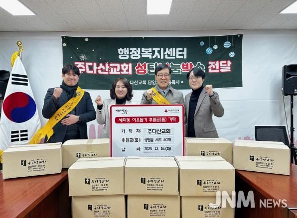 제이앤엠뉴스 | 오산시 세마동 행정복지센터는 지난 16일 주다산교회가 겨울철 어려움을 겪고 있는 이웃들을 돕기 위해 생필품 세트 40개를 기탁했다고 밝혔다.