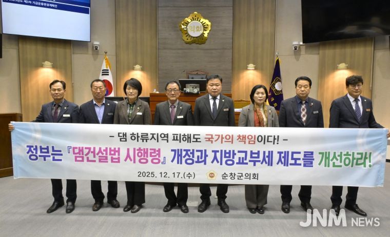 제이앤엠뉴스 | 순창군의회는 지난 17일 제300회 임시회 제2차 본회의에서 댐 하류지역의 반복적인 재해 위험과 재정부담 해소를 위해 '댐건설법 시행령' 개정을 촉구하는 건의안을 채택했다.