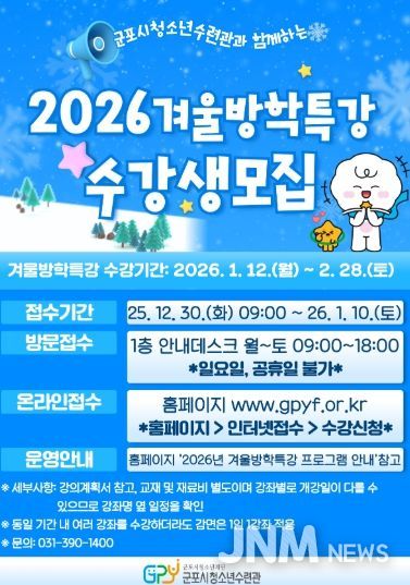 제이앤엠뉴스 | (재)군포시청소년재단 군포시청소년수련관은 2026년 1월 12일부터 2월 28일까지 겨울방학을 맞아 문화·체육 분야 겨울방학특강 프로그램을 운영한다.