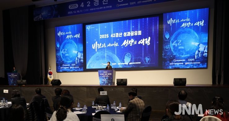 제이앤엠뉴스 | (재)경산이노베이션아카데미는 16일 대구 호텔수성에서 조현일 경산시장, 안문길 경산시의회 의장, 정의라 과학기술정보통신부 SW기반조성팀장, 신준우 정보통신기획평가원(IITP) 전략 기획 본부장 등 주요 내빈과 지역 기업·대학 관계자, 교육생 등 200여 명이 참석한 가운데 '2025년 42경산 성과공유회'를 열고, 지난 1년간 진행된 교육 프로그램과 산학협력, 글로벌 활동의 주요 성과를 공유했다.