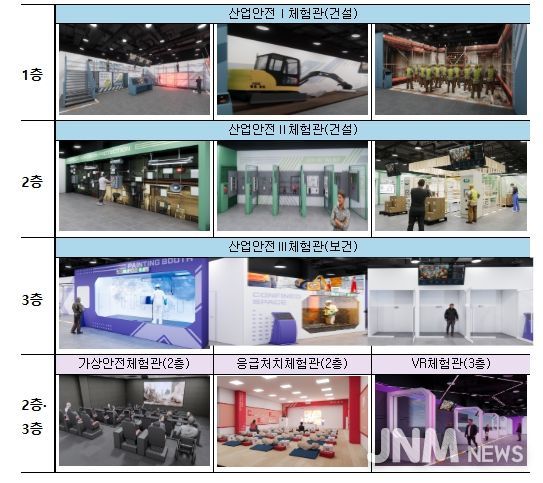 인천 안전체험교육장은 6개 테마관(산업안전1체험관, 산업안전2체험관, 산업안전3체험관, 응급처치체험관, 가상안전체험관, VR체험관)과 65종의 교육콘텐츠로 구성되어 추락, 끼임 등 산업현장에서 자주 발생하는 재해 유형을 실감 나게 체험할 수 있다.