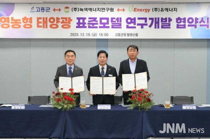 협약에 따라 ▲고흥군은 실증단지 부지 제공과 배전선로 설치 등 행정 지원을 총괄하고 ▲주관기관인 ㈜유에너지는 설비 설계 및 시공과 기술관리를 담당하며 ▲(재)녹색에너지연구원은 작물 생육환경 검토와 데이터 검증 등 기술 자문을 수행하게 된다.