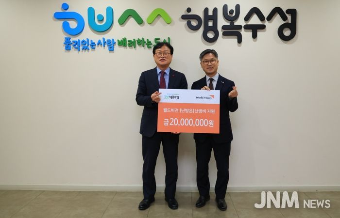 제이앤엠뉴스 | 사회복지법인 월드비전 대구경북사업본부는 지난 18일 취약계층 아동 가정의 난방비 지원을 위해 후원금 2,000만 원을 수성구청에 전달했다.