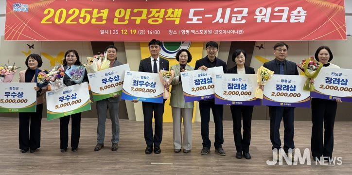 제이앤엠뉴스 | 전라남도는 19일 함평 엑스포공원에서 ‘2025년 인구정책 도-시군 워크숍’을 열고, 인구대전환 시즌 2 생활인구 ‘생생생’ 프로젝트 발표와 도-시군 인구정책 성과 공유 등 행사를 진행했다고 밝혔다.