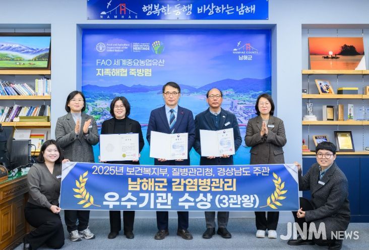 제이앤엠뉴스 | 남해군은 2025년 감염병 예방 및 관리에 기여한 공로를 인정받아 감염병관리분야에서 3개 기관 표창을 수상했다고 밝혔다.