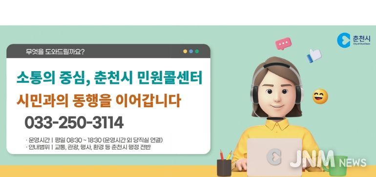 제이앤엠뉴스 | 춘천시 민원콜센터 운영이 앞으로 2년 더 이어진다. 춘천시(시장 육동한)는 지난 19일 민원콜센터 위탁 운영사인 KTcs와 재협약을 체결하고 민원콜센터 운영 기간을 연장하기로 했다. 시민 중심의 고품질 민원서비스에 대한 높은 만족도가 재협약의 배경이다.