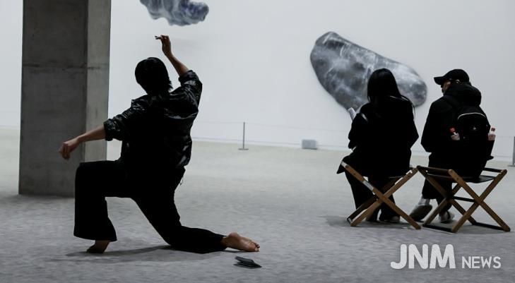 지난 11월 29일에는 코어레주(Corelage, 김민혁, 정성택, 양설희)가 참여한 첫 번째 프로그램 '댄스 콜라주'가 진행됐다. 무용을 기반으로 한 세 명의 퍼포머가 전시 작품에서 영향을 받아 제작한 사운드를 중심으로 즉석 퍼포먼스를 펼쳤다.