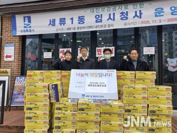 이번 나눔은 겨울철 경제적 어려움을 겪고 있는 취약계층 이웃들에게 작은 힘이 되고자 마련됐으며, 기탁된 라면은 세류1동 내 취약계층 및 도움이 필요한 가구에 전달될 예정이다.