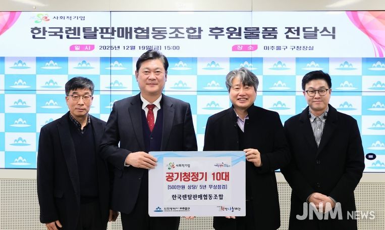 제이앤엠뉴스 | 인천 미추홀구는 지난 19일 사회적기업 한국렌탈판매협동조합(대표 정영이)으로부터 공기청정기 10대를 전달받았다.