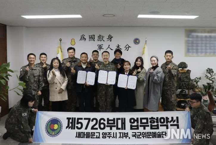 제이앤엠뉴스 | 새마을문고 양주시지부는 지난 12월 19일, 육군 제5726부대에서 군 장병들의 독서문화 확산과 인문학적 소양 증진을 위한 업무협약(MOU)을 체결했다고 밝혔다.