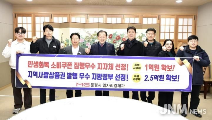 제이앤엠뉴스 | 문경시는 행정안전부가 실시한 ‘민생회복 소비쿠폰 집행 우수 지자체 평가’에서 특별교부세 1억 원, ‘지역사랑상품권 발행 우수 지방정부 평가’에서 특별교부세 2억 5천만 원을 확보했다.