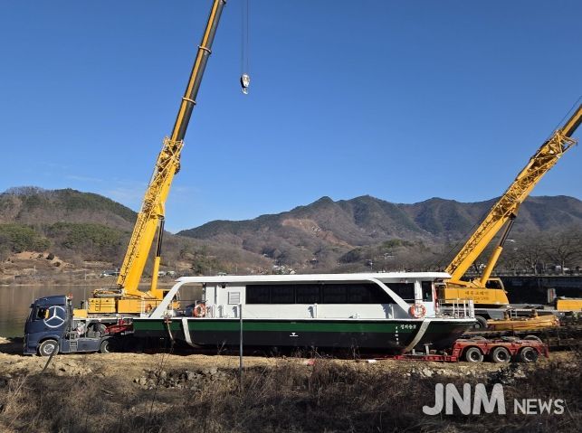 제이앤엠뉴스 | 22일 옥천읍 수북리 안터교 인근 대청호에 친환경 전기도선 ‘정지용호’를 진수한다. 이제, 주민들의 간절한 염원인‘대청호 뱃길’ 실현이 눈앞에 다가왔다.