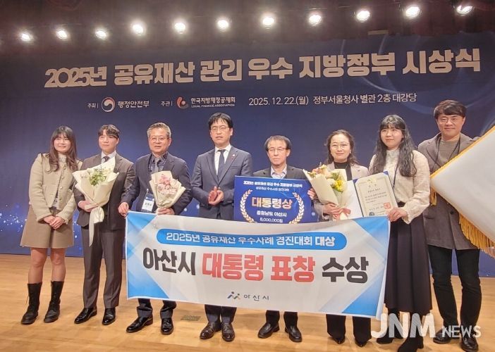 제이앤엠뉴스 | 아산시는 행정안전부가 주관한 ‘2025년 공유재산 우수 지방자치단체 시상식’에서 우수사례 경진대회 부문 전국 1위에 해당하는 대통령상을 수상했다고 22일 밝혔다.
