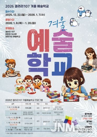 제이앤엠뉴스 | 전라남도 곡성군이 운영하는 갤러리 107에서 오는 12월 22일부터 내년 1월 7일까지 ‘겨울 예술학교’ 프로그램 참가자를 모집한다고 밝혔다.