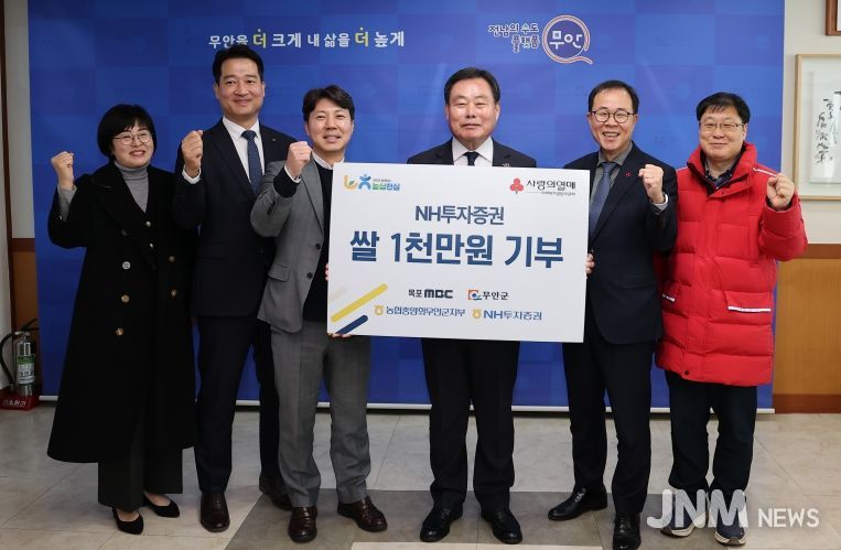 제이앤엠뉴스 | 무안군은 연말을 맞이하여 지난 22일 NH투자증권(회장 윤병운)으로부터 쌀 10kg 280포(1,000만 원 상당)를 기탁받았다고 밝혔다.