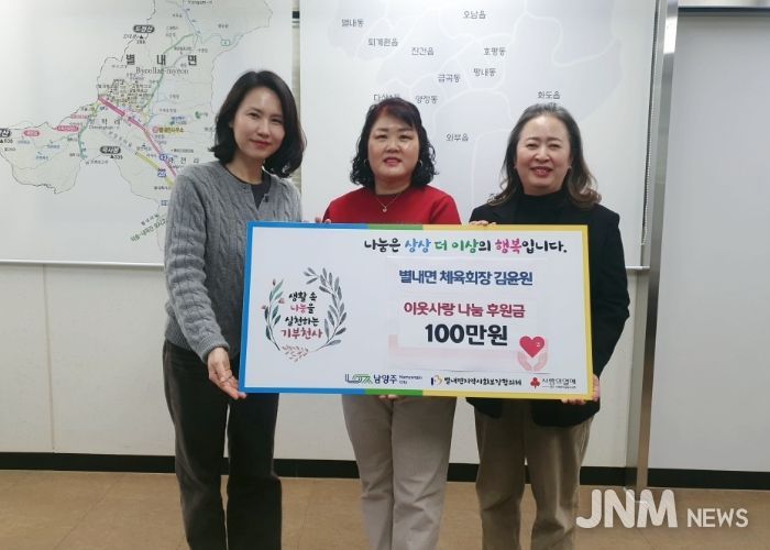 제이앤엠뉴스 | 남양주시는 지난 19일 김윤원 별내면 체육회장이 지역 내 취약 가구 지원을 위해 이웃사랑 성금 100만 원을 별내면 지역사회보장협의체에 기탁했다고 22일 밝혔다.