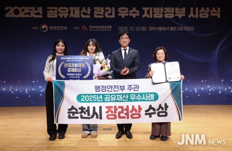 제이앤엠뉴스 | 순천시는 지난 22일 행정안전부 주관으로 정부서울청사에서 열린 ‘2025년 공유재산 우수 지방단체 시상식’에서 공유재산 우수사례 경진대회 부분 ‘장려상’을 수상했다고 밝혔다.
