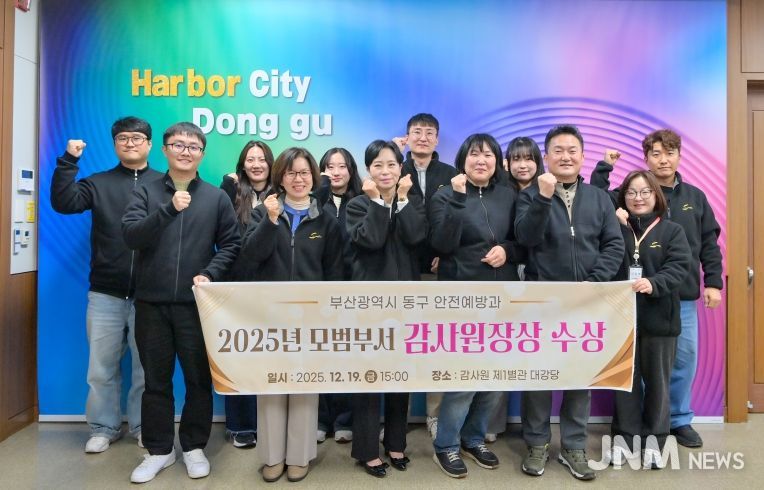 제이앤엠뉴스 | 부산 동구는 안전예방과가 감사원으로부터 모범부서로 선정돼 지난 19일 감사원에서 열린 2025년도 모범사례 포상행사에서 감사원장 표창을 받았다고 밝혔다.