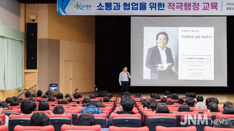 제이앤엠뉴스 | 합천군은 23일 합천군종합사회복지관 3층 대강당에서 전 직원을 대상으로 ‘2025년 적극행정 교육’을 오전·오후 2회차로 나누어 실시했다.