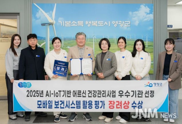 제이앤엠뉴스 | 영광군은 12월 18일 한국사회보장정보원 주관으로 서울PJ호텔에서 열린 2025년 AI-IoT기반 어르신 건강관리사업 모바일 보건소 시스템 활용 평가 성과대회에서 장려상을 수상하며 2년 연속 우수기관으로 선정됐다.