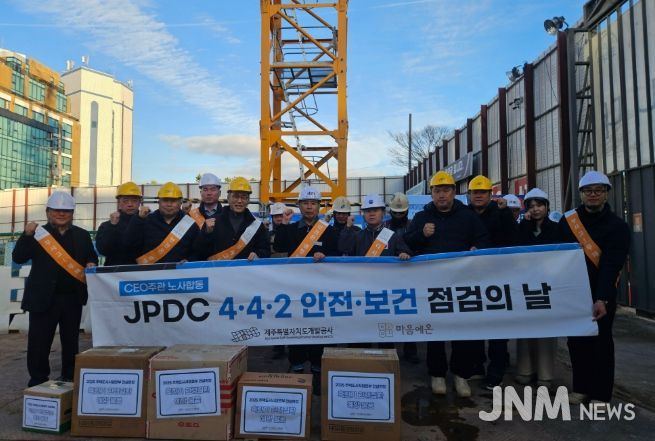 제이앤엠뉴스 | 제주특별자치도개발공사(사장 백경훈)는 지난 23일 겨울철 한파로 인한 건설현장 근로자의 안전사고를 예방하고, 안전한 작업 여건을 조성하기 위해 혹한기 한랭질환 예방활동과 CEO 주관 노사합동 4·4·2 안전점검을 실시했다.