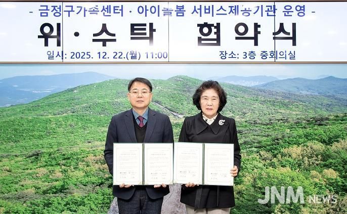 제이앤엠뉴스 | 부산시 금정구는 22일 오전 11시 금정구청 3층 중회의실에서 가족센터·아이돌봄 서비스제공기관 운영 위·수탁 협약식을 개최했다.