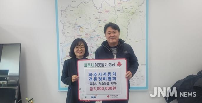 제이앤엠뉴스 | 파주시는 지난 22일, 파주시자동차전문정비협회가 파주시청을 방문하여 관내 취약계층을 위해 써달라며 현금 5백만 원을 기탁했다고 밝혔다.