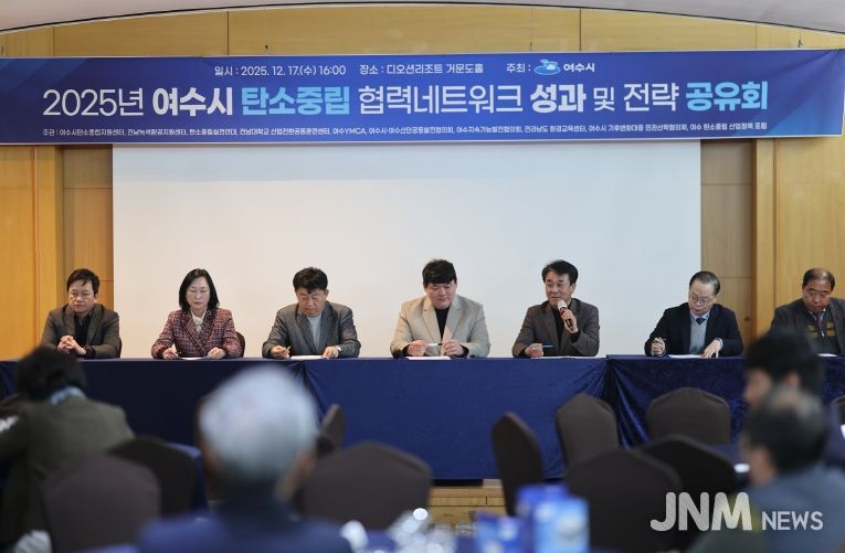 공유회에서는 여수시 탄소중립 협력네트워크 구성원 간 협력 및 공동사업 MOU 체결이 이뤄졌다. 또한 여수시의회 기후변화 대응 탄소중립연구회 소속 의원들에게 감사패 전달과 참여기관별 2025년 사업 추진 현황 및 성과가 공유됐다. 이어 여수시 탄소중립 협력네트워크 활성화 방안을 논의하는 토론도 진행됐다.