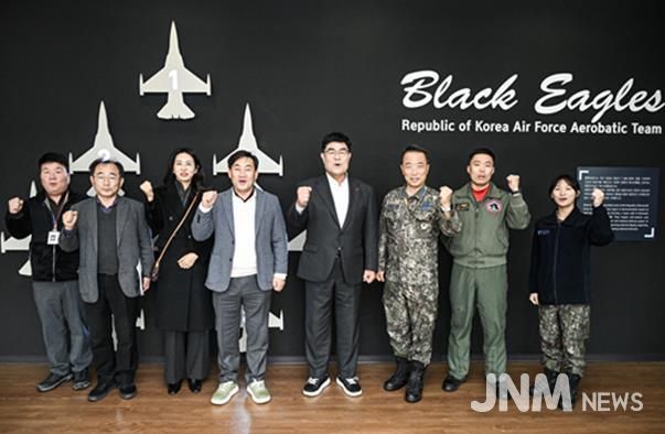 제이앤엠뉴스 | 삼척관광문화재단이 삼척의 주요 축제에서 화려한 에어쇼로 시민과 관광객들에게 잊지 못할 감동을 선사한 대한민국 공군 특수비행팀 ‘블랙이글스’를 직접 찾아 감사의 뜻을 전했다.