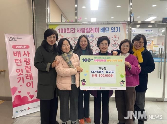 제이앤엠뉴스 | 의정부시 가능동주민센터는 12월 22일 SK뷰아파트부녀회가 관내 저소득 가구를 돕기 위해 성금 50만 원을 기탁하며 ‘100일간 사랑릴레이 배턴 잇기’에 동참했다고 밝혔다.