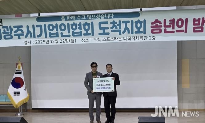 제이앤엠뉴스 | (사)광주시기업인협회 도척지회는 지난 22일 도척스포츠타운에서 송년회를 개최하고 연말연시를 맞아 도척면에 이웃돕기 성금 300만 원을 기탁했다.