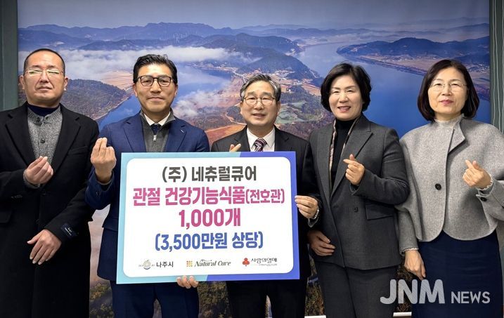 제이앤엠뉴스 | ㈜네츄럴큐어는 산림청 R&D 연구를 통해 전남산림연구원과 공동으로 개발한 관절 건강기능식품 ‘전호관’ 1천 개(3500만 원 상당)를 나주시에 기탁했다.