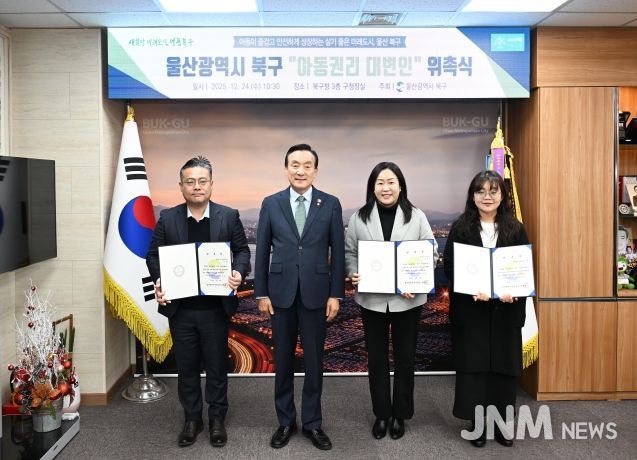 제이앤엠뉴스 | 울산 북구는 24일 구청장실에서 아동권리 대변인 위촉식을 열고, 신규·연임 대변인 3명에게 위촉장을 전달했다.
